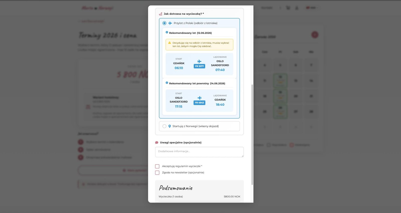 - Dynamicznego przelicznika walut PLN/NOK z aktualnym kursem