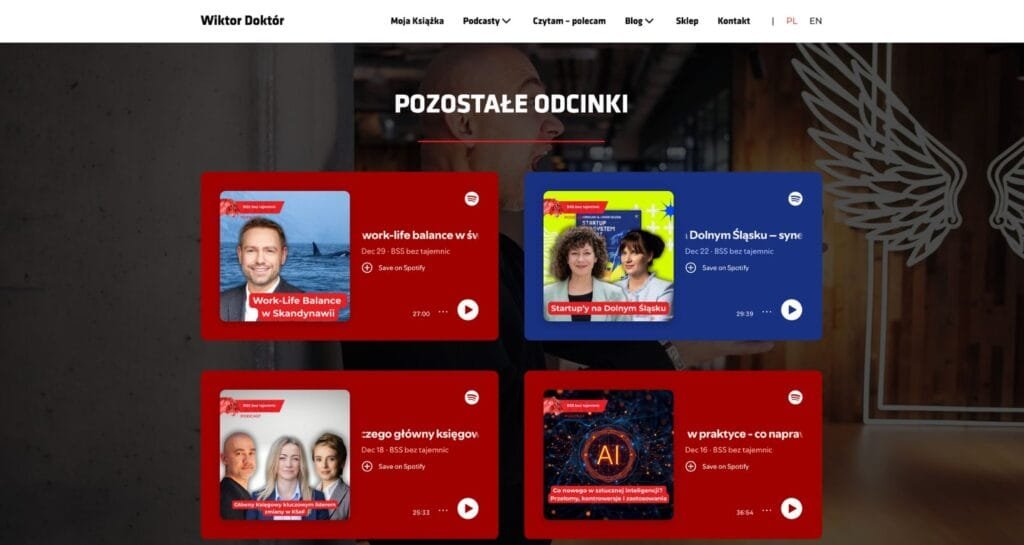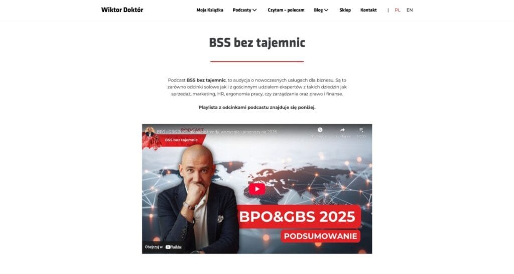 Wiktor Doktór to uznany podcaster, prowadzący konferencje i lider Klubu Pro Progressio oraz mediów FOCUS ON Business. Potrzebował profesjonalnej strony, która odda jego wieloletnią ekspertyzę i ułatwi klientom zamawianie usług.